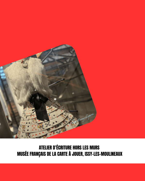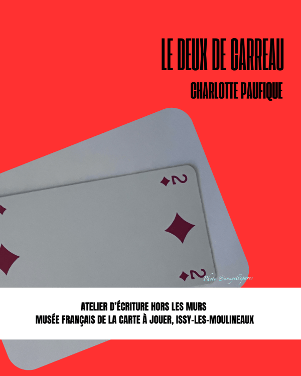 Rendez-vous d’écriture autour de « La mécanique des cartes » ! Après la visite guidée du Musée français de la Carte à jouer à Issy-les-Moulineaux, Annie Lamiral, intervenante À Mots croisés, a invité chaque écrivante à tirer une carte à jouer. Le ton du récit à construire était dicté par la couleur, le personnage ou la valeur.... Lire la Suite →
