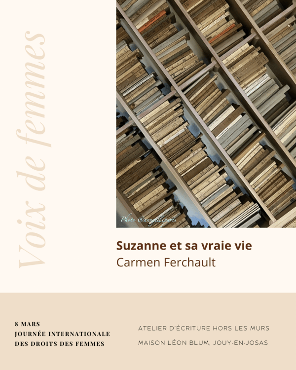 C’est en plein cœur de Bagneux, au Boudoir Masséna, qu’Annie Lamiral, intervenante À Mots croisés, a proposé un atelier d’écriture hors les murs : « Que d’émotions dans le boudoir ». Pour Francine : « Après la montée raide d’une volée de marches et le passage du seuil de la porte d’une petite pièce carrée, c’est... Lire la Suite →