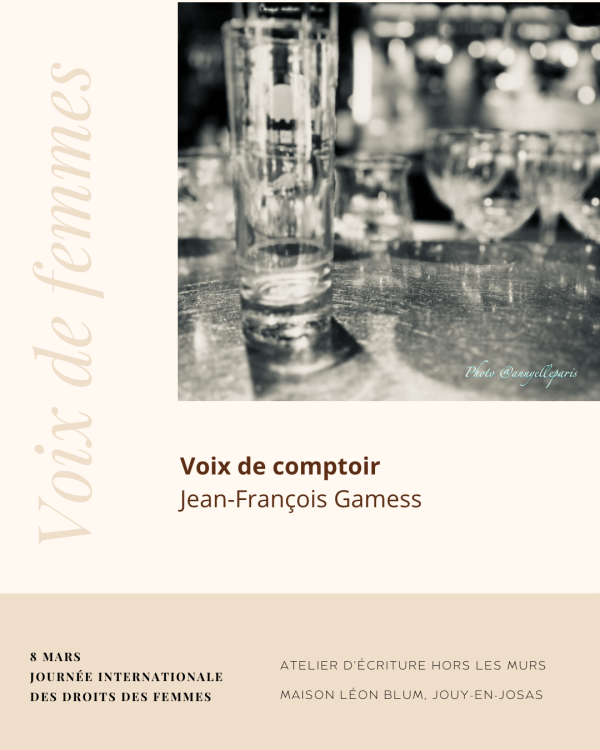 C’est en plein cœur de Bagneux, au Boudoir Masséna, qu’Annie Lamiral, intervenante À Mots croisés, a proposé un atelier d’écriture hors les murs : « Que d’émotions dans le boudoir ». Après la visite guidée, Annie a invité les écrivants à écrire une fiction autour d’une émotion forte, avec contraintes (temps, lieu, deux personnages dont... Lire la Suite →