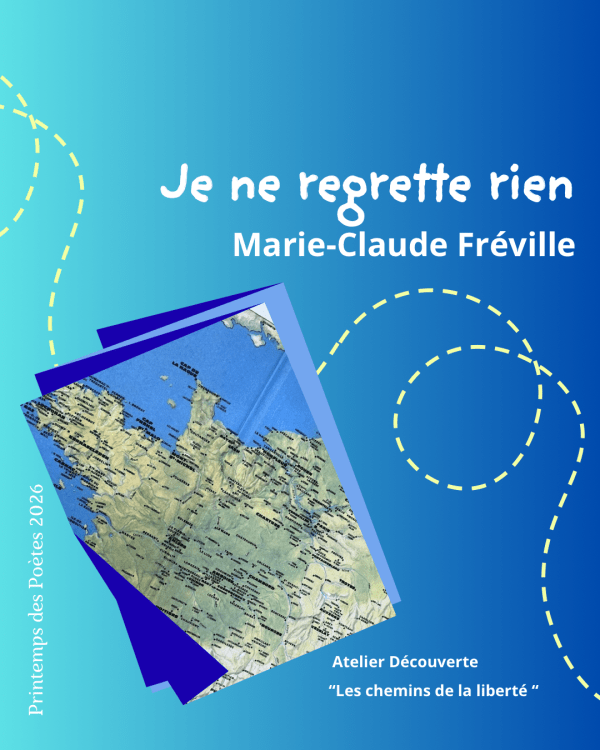 À l’occasion de la 28e édition du « Printemps des Poètes » du 9 au 31 mars 2026 placé cette année sous le thème de la « Liberté. Force vive, déployée. », Annie Lamiral, intervenante À Mots croisés, a choisi de lancer Charlotte, Isabelle, Marie-Claude et Philippe dans l’écriture des « Chemins de la liberté ». Une carte routière à la... Lire la Suite →