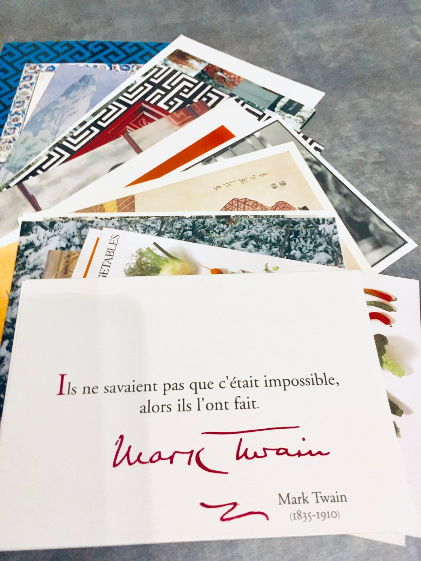 Dans l’atelier « Qui m’écrit ? », Virginie, l’animatrice d’ A Mots croisés, avait apporté quelques cartes pour déclencher l’écriture. Danielle a retenu celle portant une citation de Mark Twain « Ils ne savaient pas que c’était impossible, alors ils l’ont fait. »