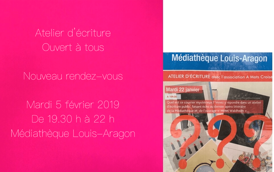 Une nouvelle date a pu être fixée pour notre atelier d’écriture « Un courrier mystérieux « , ouvert à tous (Voir précédente actu) :