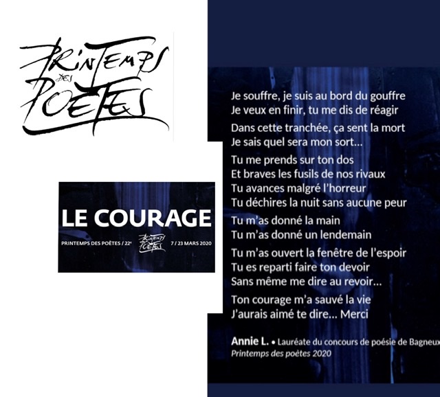 Du 7 au 23 mars 2020, se déroule dans toute la France le 22e Printemps des Poètes. Cette nouvelle édition porte sur « Le Courage ».