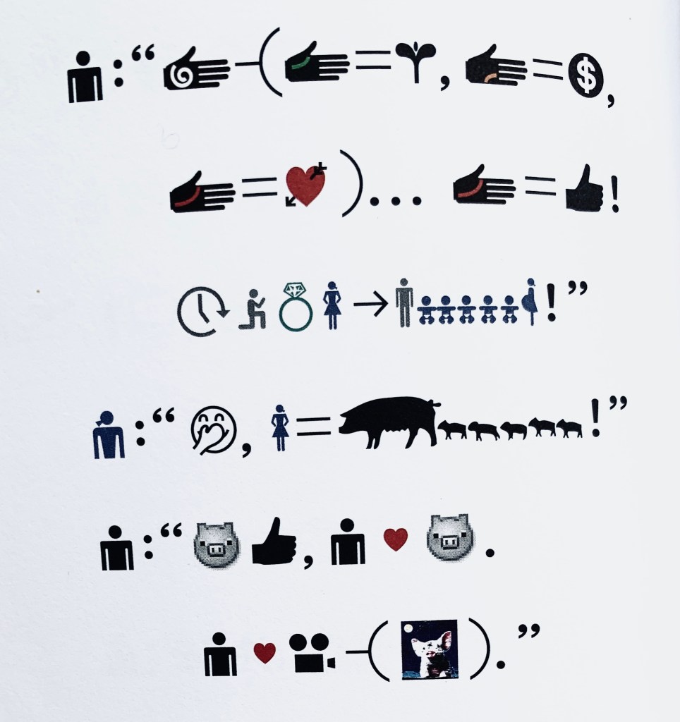 Nouvel exercice de l’atelier : Virginie propose d’essayer de décrypter une page de l’ouvrage de Xu Bing. Annie tente l’expérience.