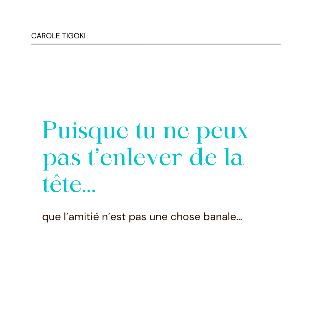 Puisque tu ne veux pas t’enlever de la tête que l’amitié n’est pas une chose banale, mais un sentiment noble et profond qui oblige à la souplesse et à la patience, je veux t’expliquer que tu joues avec le feu. Et crois-moi, je sais de quoi je parle.