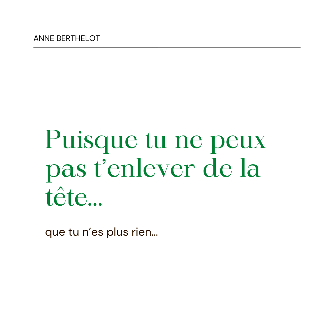 Puisque tu ne peux pas t’enlever de la tête, que tu n’es plus rien,
