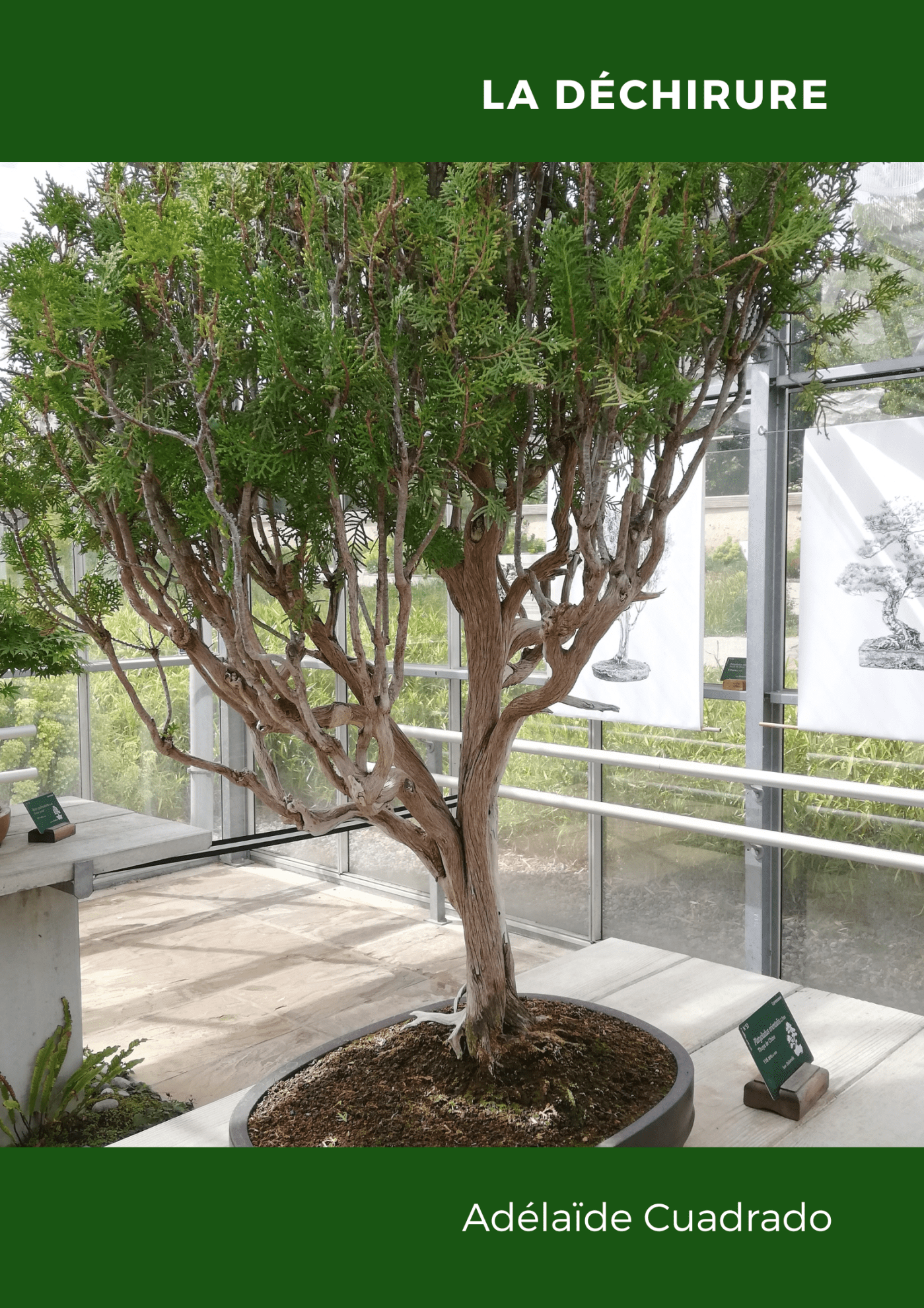 Je me souviens quand tu es arrivé chez moi, rachitique, quelques feuilles éparses et à peine quelques centimètres. Je t’avais vu par terre sur un trottoir, abandonné. Tu n’étais pas au mieux et tu m’as fait pitié. J’avais l’impression que tu avais grandi sous un vent continu venant de la terre : tu avais un air ébouriffé, seules tes branches hautes étaient vertes, laissant blanches le bas et le tronc, comme s’ils étaient morts.