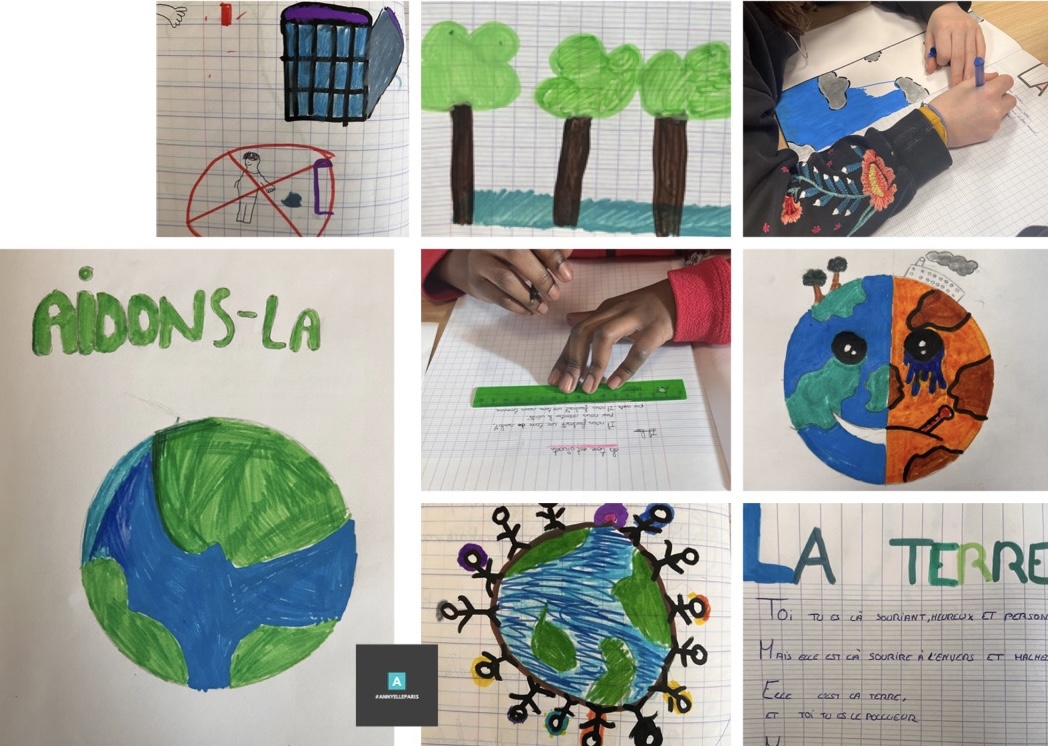 Hier, vous avez pu lire les réponses des enfants à la question : « C’est quoi la Terre pour toi ? » ainsi que leurs phrases choc pour défendre leurs gestes pour la planète ou pour inviter d’autres à faire pareil.
