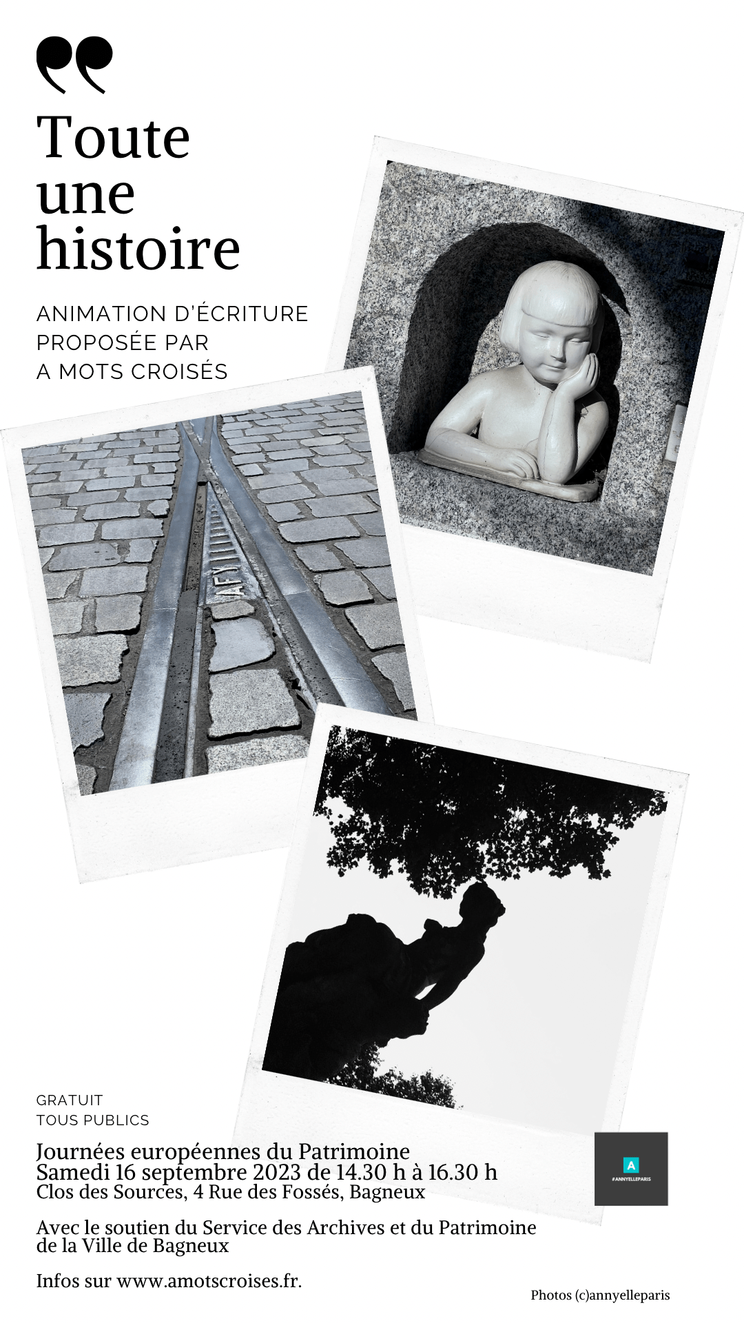 Cette année encore, À Mots croisés vous donne rendez-vous samedi 16 septembre 2023 de 14.30 h à 16.30 h au jardin du Clos des Sources (future Maison du Patrimoine), 4, rue des Fossés à Bagneux !
