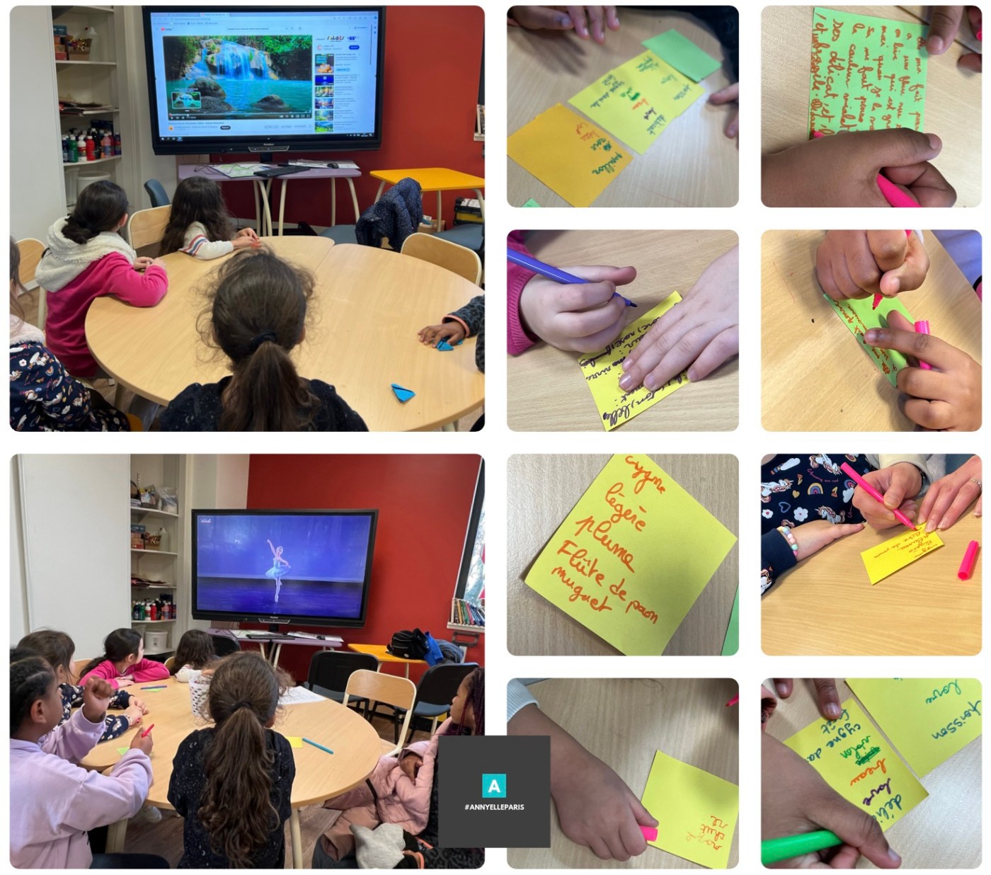 En vue du prochain Printemps des Poètes qui se déroulera partout en France entre le 9 et le 25 mars 2024, Céline, animatrice au Centre de Loisirs Rosenberg a invité Annie, intervenante d’A Mots croisés, pour proposer une animation d’écriture aux enfants, avec pour objectif la création de poèmes, destinés à être lus lors d’une scène ouverte à la Médiathèque Aragon.