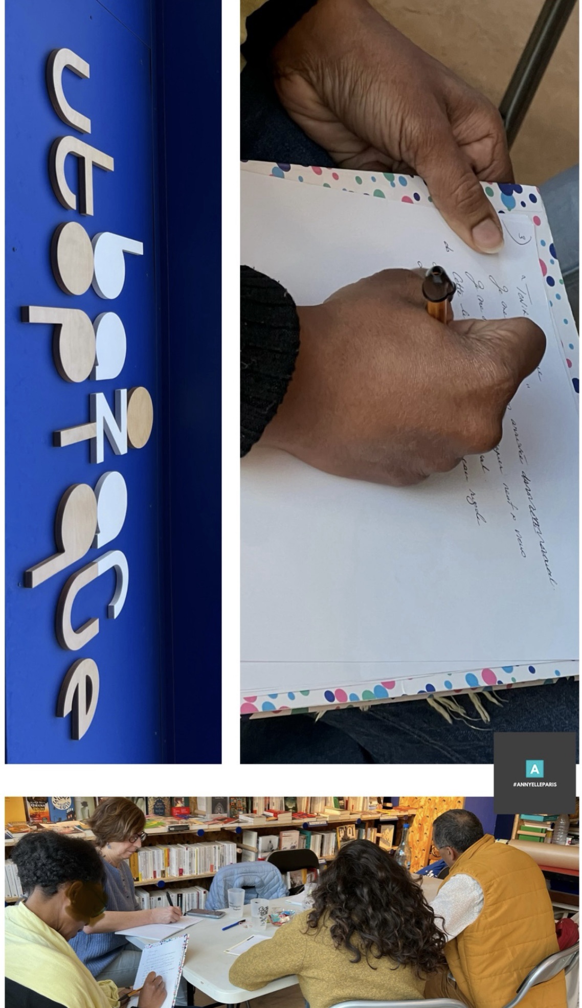 C’était une première expérience pour elle que d’écrire en atelier et elle s’est prêtée au jeu avec grand plaisir : Imaginer une ou un.e libraire ou /et un fragment de vie dans une librairie. Bonne lecture !
