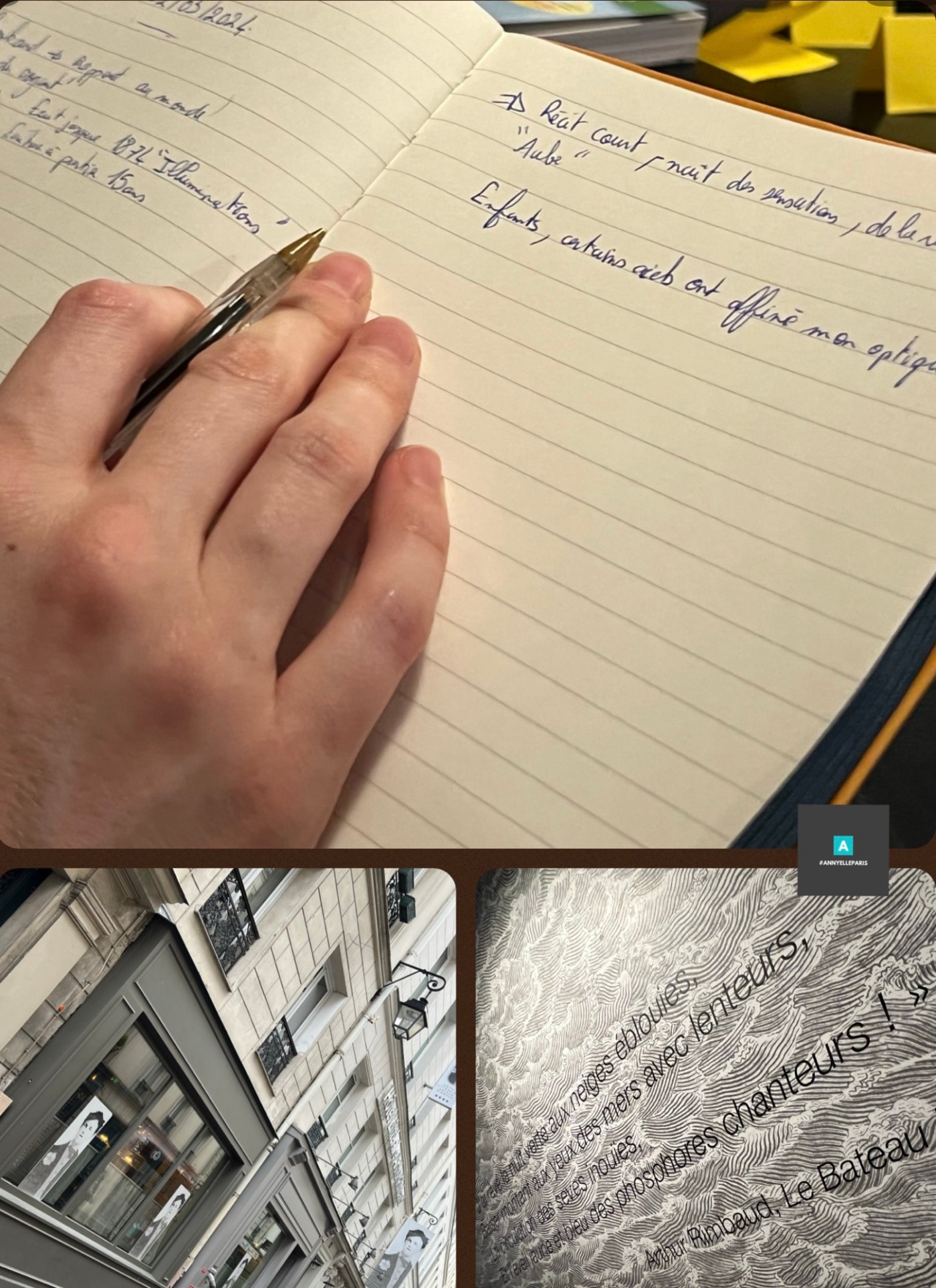 Deuxième temps de l’atelier à l’Hôtel littéraire Arthur Rimbaud : Marie-Laure Rossi, intervenante, nous invite, à écrire un récit à partir de phrases oniriques, extraites des poèmes en prose d’Arthur Rimbaud, les « Illuminations ».