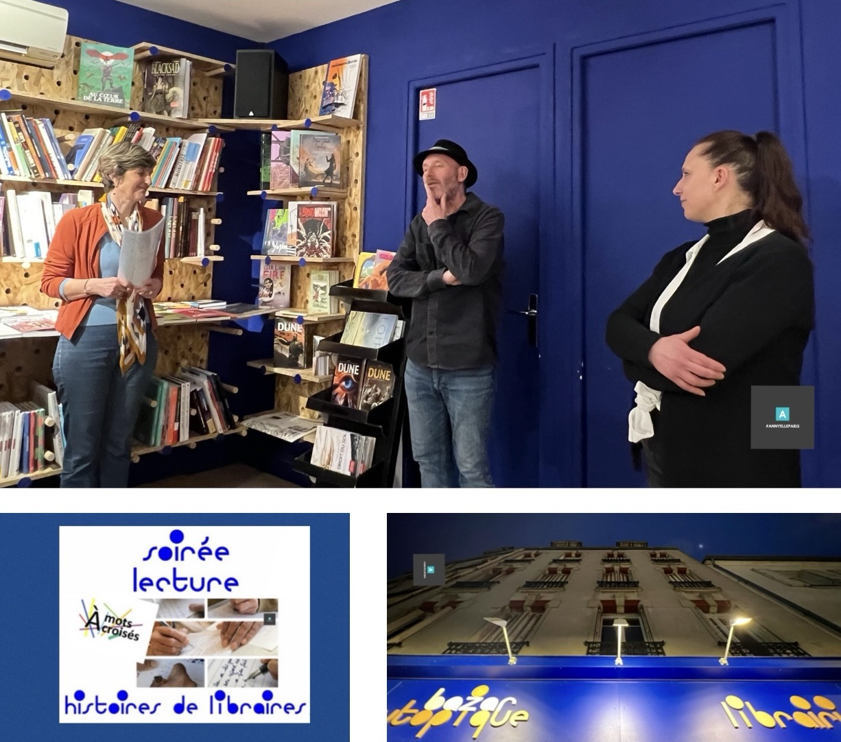 Dernier partage des vidéos de la mise en voix ou la mise en vie (!) par Olivier Louise, comédien, des « Histoires de libraires » imaginées par Carmen, Elisa, Jean-François, Annie et Margareth, lors d’un atelier d’A Mots croisés au Bazar utopique !