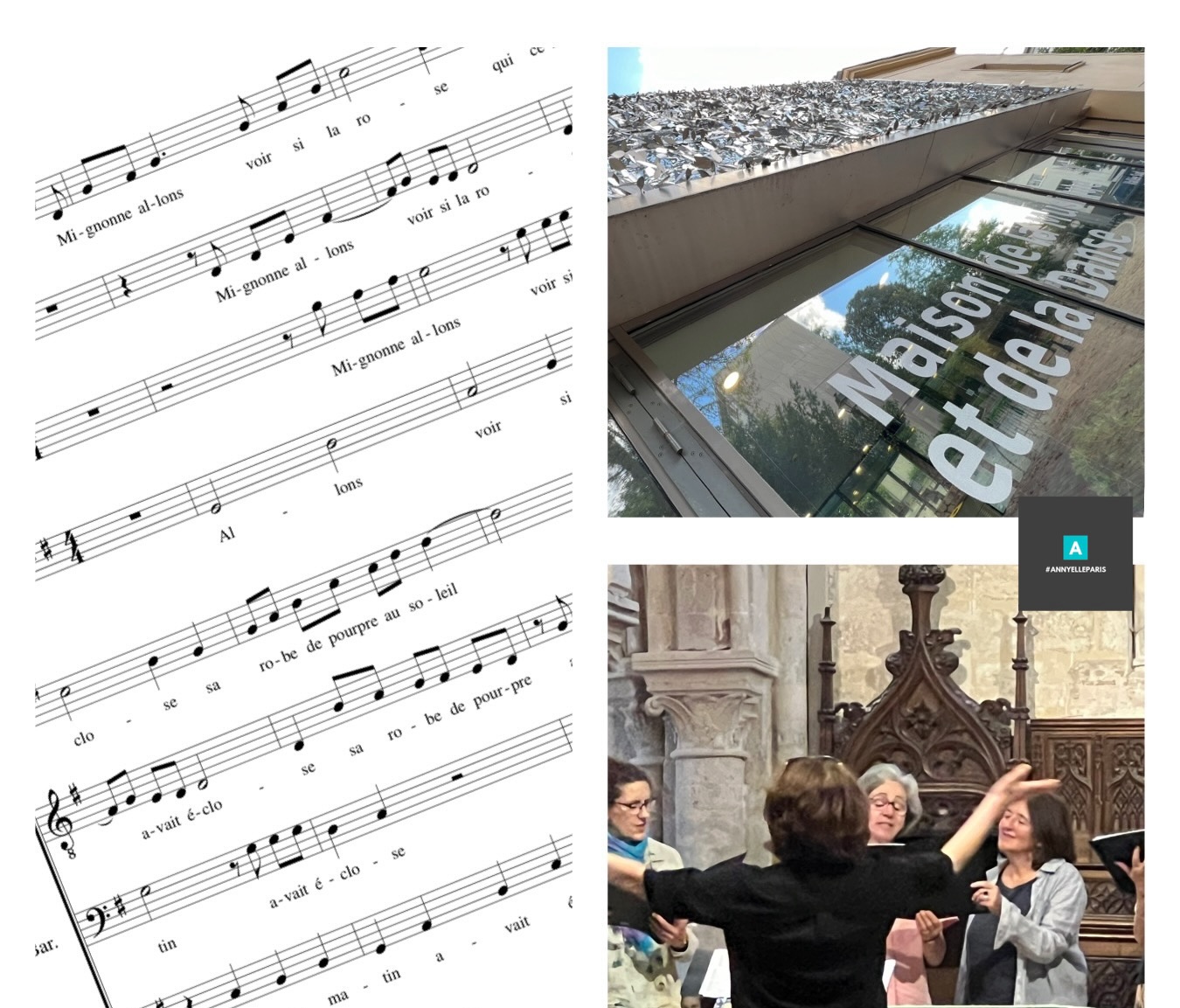 Je peux aussi bien proposer de travailler une nouvelle partition en anglais qu’en italien, en espagnol ou en latin. On traduit toujours pour savoir ce que l’on chante. Quelquefois, nous avons de grandes discussions, comme par exemple quand il s’agit des chants élisabéthains en vieil anglais ! Tout cela fait partie du travail de mise en place du chant.