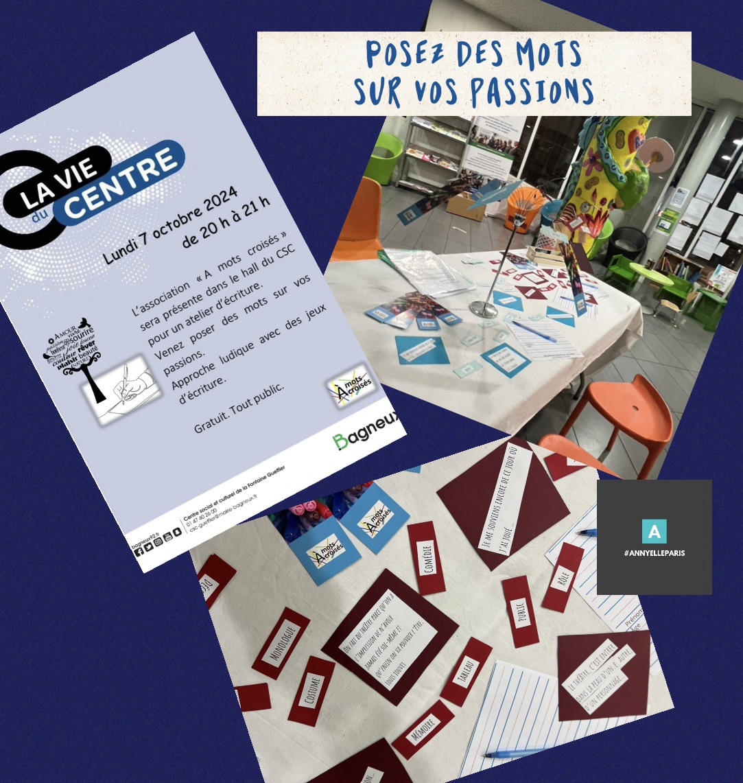 Lundi 7 octobre 2024, le Centre social et culturel Fontaine-Gueffier invitait À Mots croisés à expérimenter une approche ludique des mots auprès de ses publics, amateurs de théâtre d’improvisation et de yoga.
