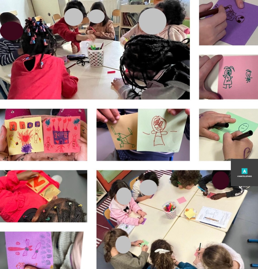 Invitée par Céline Nicolleau, directrice de l’accueil de loisirs Paul-Langevin, Annie Lamiral, intervenante d’À Mots croisés, a recueilli, mercredi 6 novembre et mercredi 13 novembre 2024, la parole des enfants sur le sujet « Droits de l’enfant – Stop à la violence ! » Il est en effet important d’écouter les enfants -même très jeunes- et de les sensibiliser aux différentes formes de violence.