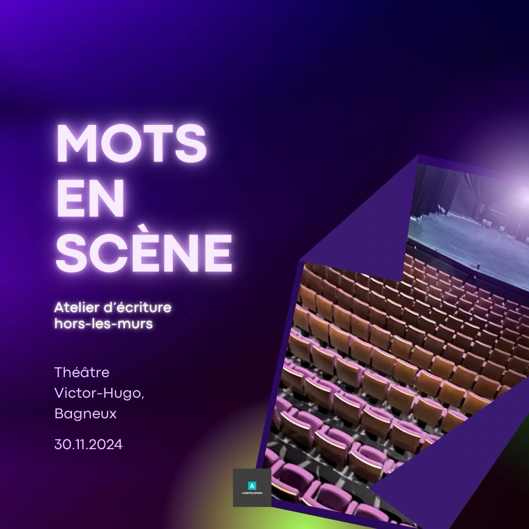 Depuis plusieurs années, A Mots croisés poursuit une coopération inédite avec le Théâtre Victor Hugo (TVH) de Bagneux. Fin novembre, Margaux Naville, responsable des relations avec le public, a accueilli nos écrivants pour leur faire découvrir l’histoire et les coulisses du lieu avant de participer à un atelier d’écriture « Mots en scène » , animé par Annie Lamiral, intervenante À Mots croisés.