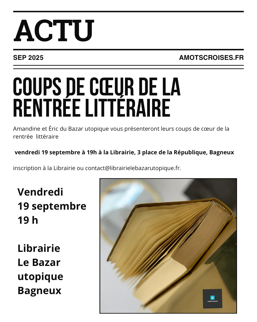 Inscription à la Librairie ou contact@librairielebazarutopique.fr.