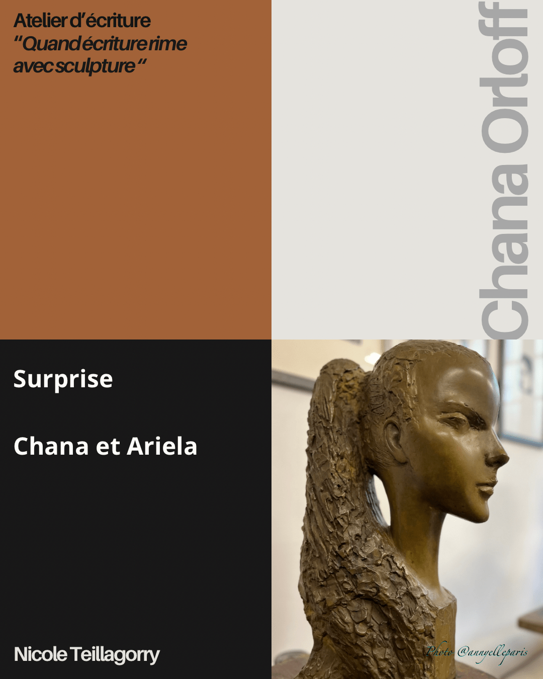 Après la visite guidée par Liva que nous remercions ici chaleureusement ainsi qu’Ariane Tamir, petite-fille de Chana Orloff et co-conservatrice du musée, Annie a invité le petit groupe à observer attentivement les sculptures, à regarder « au-delà du corps », à poser des mots, à faire une description sensible de l’œuvre de leur choix, ce que la posture, la matière, le style racontent. Puis, dans un autre temps d’écriture à faire dialoguer deux sculptures.