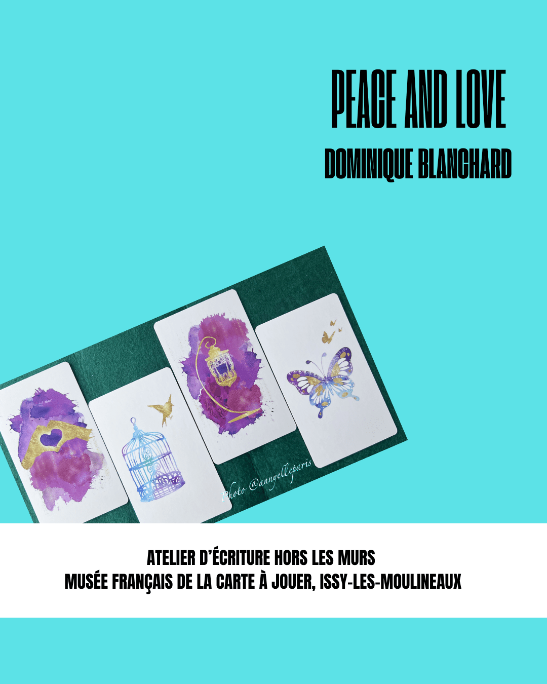 Rendez-vous d’écriture autour de « La mécanique des cartes » ! Après la visite guidée du Musée français de la Carte à jouer à Issy-les-Moulineaux, Annie Lamiral, intervenante À Mots croisés, a invité chaque écrivant à tirer quatre cartes d’oracle*. Puis, elle les a invités à se laisser porter par les dessins, les couleurs, les formes pour imaginer un oracle intuitif à partir des vibrations ressenties ou pour créer une histoire inspirée par leurs cartes, selon leurs propres énergies.