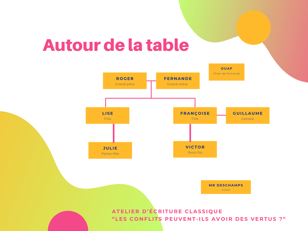 Après un temps de débat philosophique sur « Les conflits peuvent-ils avoir des vertus ? » , Valentine Pardo @laphilosopheuse invite chaque écrivant à incarner un personnage tiré au sort et à imaginer un monologue intérieur face à une situation conflictuelle. Au décès de Fernande, qui va hériter de la maison de famille ?