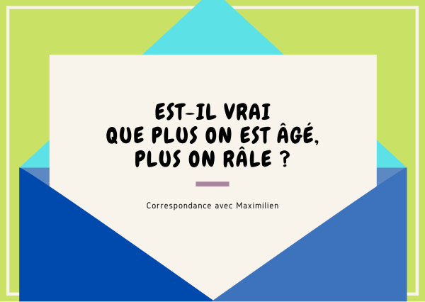 Pour répondre à J., Maximilien devient Eugène. Il reste discret sur son grand âge, mais reconnaît avec un certain sens de l’humour : « … j’espérais bien te faire rire ! À vrai dire, je ne connais pas de but plus noble : faire rire les gens. Tu conviendras avec moi que c’est important, surtout en ce... Lire la Suite →
