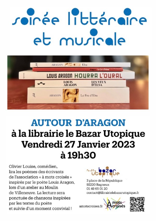« Est-ce ainsi que les hommes vivent ? », « Il n’y a pas d’amour heureux » et bien d’autres vers connus d’Aragon ont résonné, vendredi soir, au 3 place de la République à Bagneux. En effet, Amandine Buissonnet et Eric Beynel, librairies du Bazar utopique avaient invité À Mots croisés à proposer une soirée... Lire la Suite →