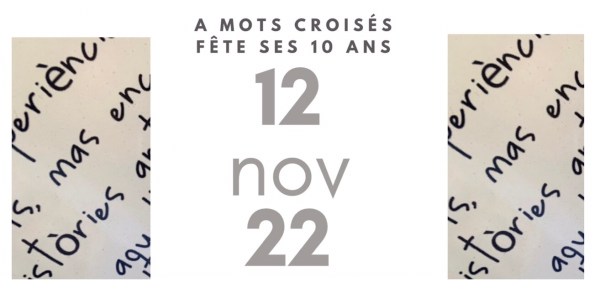 Samedi 12 novembre 2022, A Mots croisés a fêté son dixième anniversaire ! Nous avons partagé un moment avec ceux qui ont apporté leur contribution à cette belle histoire, avec ceux qui ont accompagné notre association tout au long de cette décennie. Après le spectacle poétique et musical, Olivier Louise, comédien amateur, a lu des... Lire la Suite →