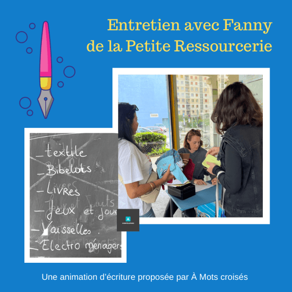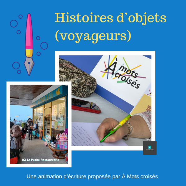 Mercredi 11 octobre 2023, À Mots croisés proposait une animation d’écriture à La Petite Ressourcerie. Première rencontre avec Audrey. Comme elle ne souhaite pas écrire, Annie, intervenante d’A Mots croisés, recueille sa parole sur « Les objets voyageurs », sujet du jour. Nous vous souhaitons bonne lecture de la retranscription ! Mystère et boule de gomme « Bonjour,... Lire la Suite →