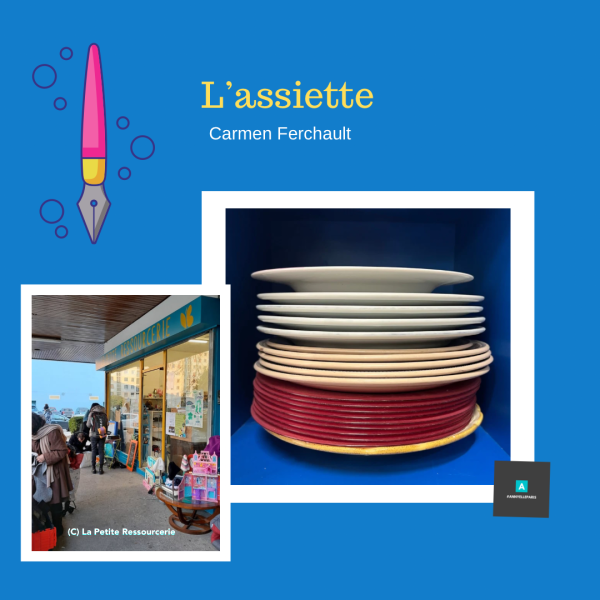 Mercredi 11 octobre 2023 - Animation d’écriture « Histoires d’objets (voyageurs) » à La Petite Ressourcerie. Sans hésiter, Carmen répond très volontiers à la proposition d’écriture et nous livre un récit qui fait revivre le voyage d’un objet du quotidien au riche passé. Bonne lecture ! L’assiette Coincée depuis tant d’années dans ce carton délabré, je m’ennuie... Lire la Suite →