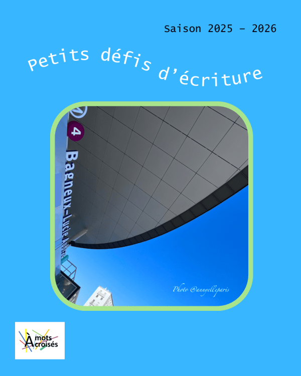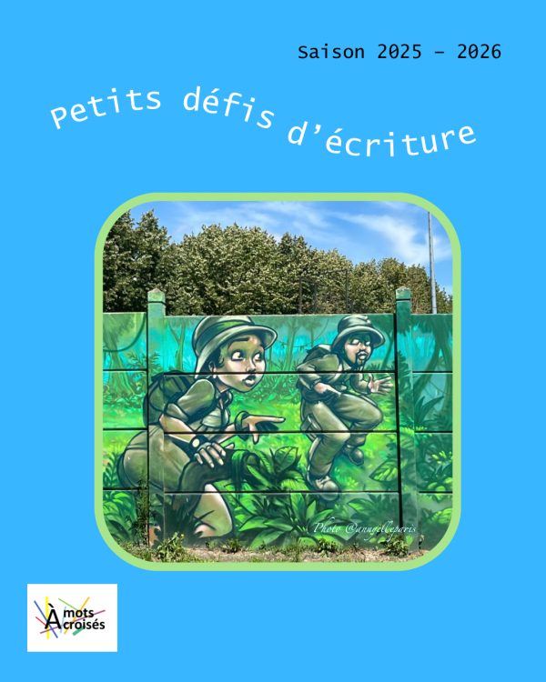 Écrire avec À Mots croisés, c'est non seulement des ateliers « Classique » et « Découverte », des ateliers hors les murs, des ateliers par mail, des animations d’écriture grand public, mais aussi, ponctuellement, pendant toute la saison 2025-2026, des défis et des conseils d’écriture ainsi que des actus littéraires sur nos réseaux (site internet, page Facebook et... Lire la Suite →