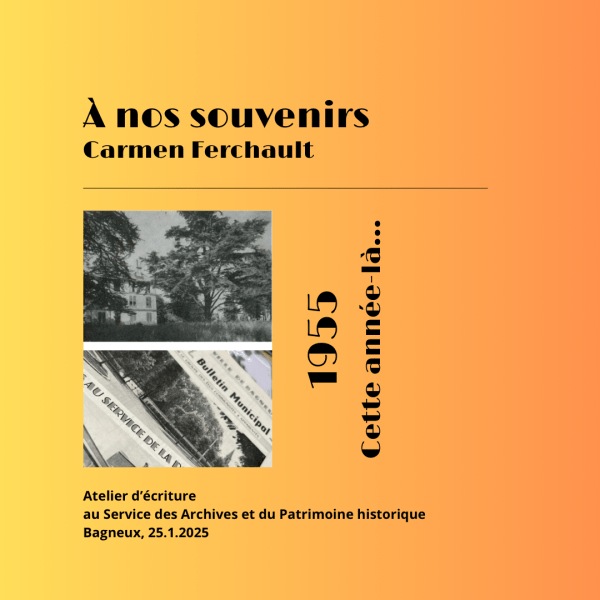 Dans le cadre des Nuits de la Lecture 2025 sur le thème des Patrimoines, À Mots croisés a proposé, samedi 25 janvier 2025, un atelier d'écriture Découverte "1955 - Cette année-là… » animé par Annie Lamiral, intervenante À Mots croisés, dans un lieu propice à la rencontre avec le patrimoine balnéolais, le Service des Archives et... Lire la Suite →